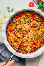 Crisp potato crust, creamy filling, and fresh veggies come together in this artisan quiche. Made with love in every layer, it’s perfect for breakfast, brunch, or a cozy night in.